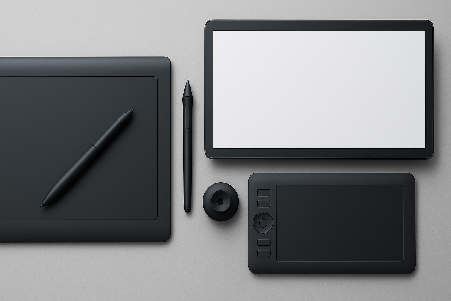 در بخش سختافزار، تبلتهای گرافیکی (Graphic Tablets) و نمایشگرهای قلمی (Pen Displays) پرکاربردترین گزینهها هستند. برندهایی مانند Wacom، XP-Pen، Huion و Gaomon مدلهای متنوعی ارائه میدهند. این دستگاهها به هنرمند اجازه میدهند مستقیماً با قلم دیجیتال روی سطح حساس به فشار طراحی کند؛ تجربهای نزدیک به نقاشی سنتی اما با امکانات دیجیتال. برای کسانی که حملونقل آسان را ترجیح میدهند، تبلتهای همهکاره مثل iPad Pro یا Samsung Galaxy Tab با نرمافزارهای تخصصی انتخاب مناسبی هستند.