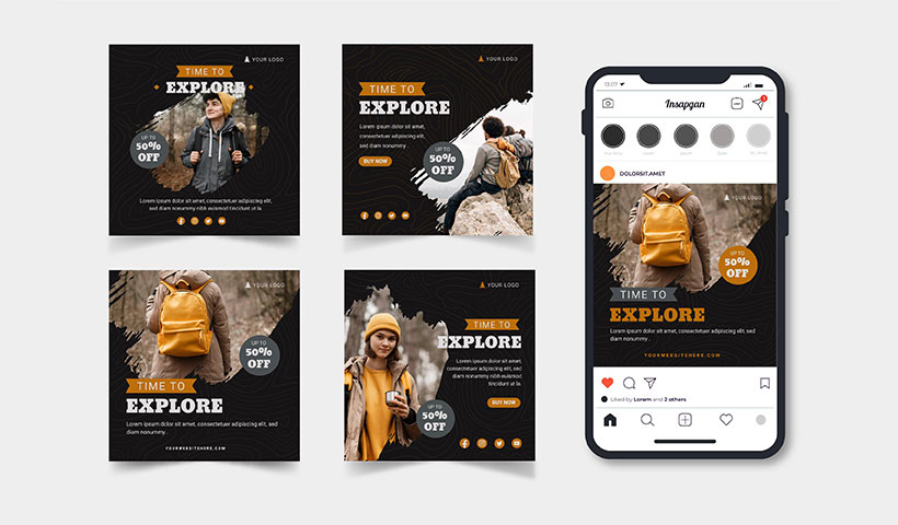 مجموعه وکتور پست اینستاگرام مدل کوه نوردی
